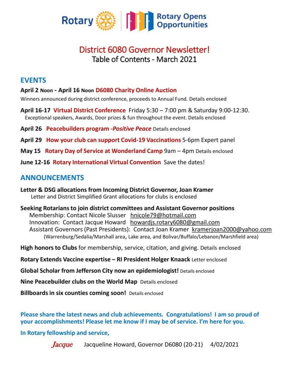 April 2021 District Governor Newsletter