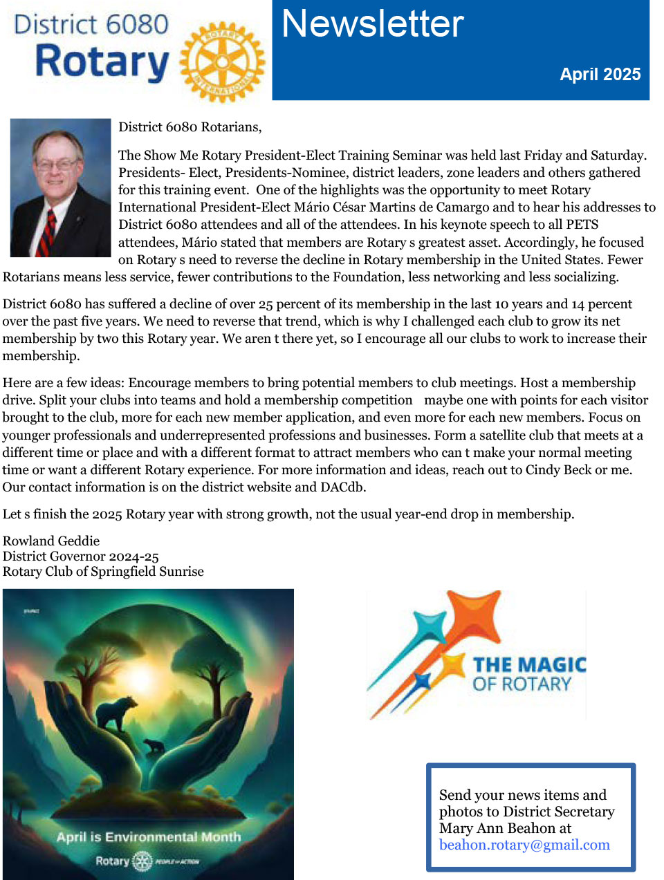 I have trained you well in the RI Strategic Plan so remember: create a vision, enhance Rotary awareness, and find unique service projects that get…