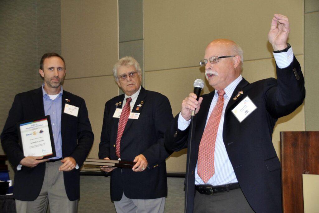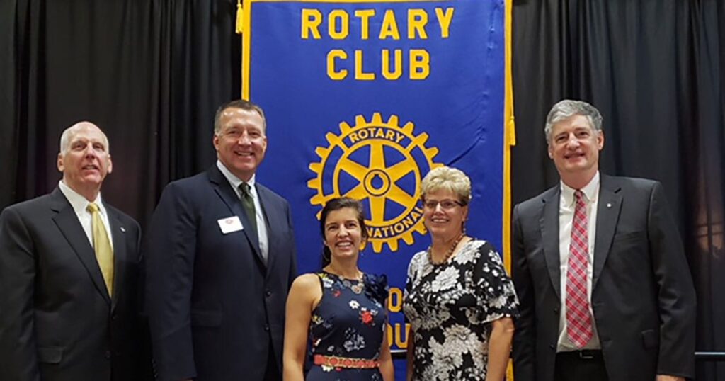 Steve Crowell. President, Rotary Club of Jefferson City; Larry Linthacum; Superintendent of Schools, Jefferson City and member of the Rotary Club of Jefferson City; Carrie Tergin, Mayor of the City of Jefferson and member of the Jefferson City Breakfast Rotary Club; Jana Forck, 2018 Jefferson City Public Schools Eisinger Teacher of the Year; and Steve