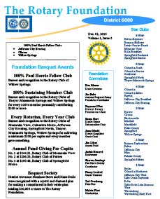Check out the December issue of the District 6080 Foundation Newsletter together with an introduction to District Governor Elect Mike Beahon. Please read his bio on page 3. He has been around the world a time or two and is now making preparation for governorship of our district in 2014-2015.